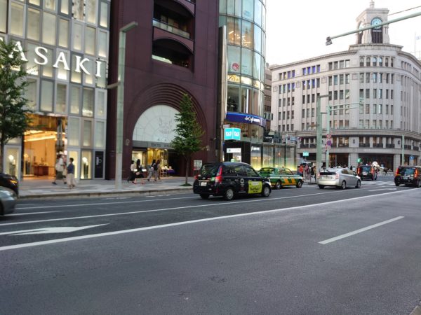 銀座のシンボル「服部時計店」。晴海通りを渡って「三愛ビル」「鳩居堂」「TASAKI」と、名にし負う名店がひしめく銀座4丁目交差点付近。鳩居堂とTASAKIの間の路面がその一か所だけ、ボコッと低くなっているところがあります。普通に歩いているとわかりにくいのですが、この場所を車に乗って通過すると、そこだけスゥッっと身体が沈み込むのでよくわかります。